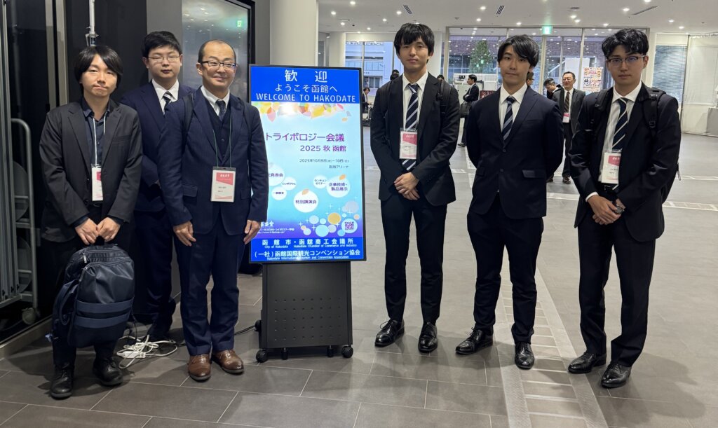 北海道函館市にある函館アリーナにて開催されたトライボロジー会議2025秋において、客員研究員の川本さん、修士2年の山崎さん(医療機器班)、修士1年の高橋さん(医療機器班)、修士1年の平山さん(フォイル班)が発表を行いました。現地では当研究室OB含めさまざまな方と交流し、実りのある学会期間となりました。